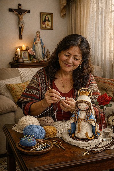 Domina el arte de tejer fe y devoción. Más de 30 patrones exclusivos detallados paso a paso, ideales para regalar, decorar o emprender.